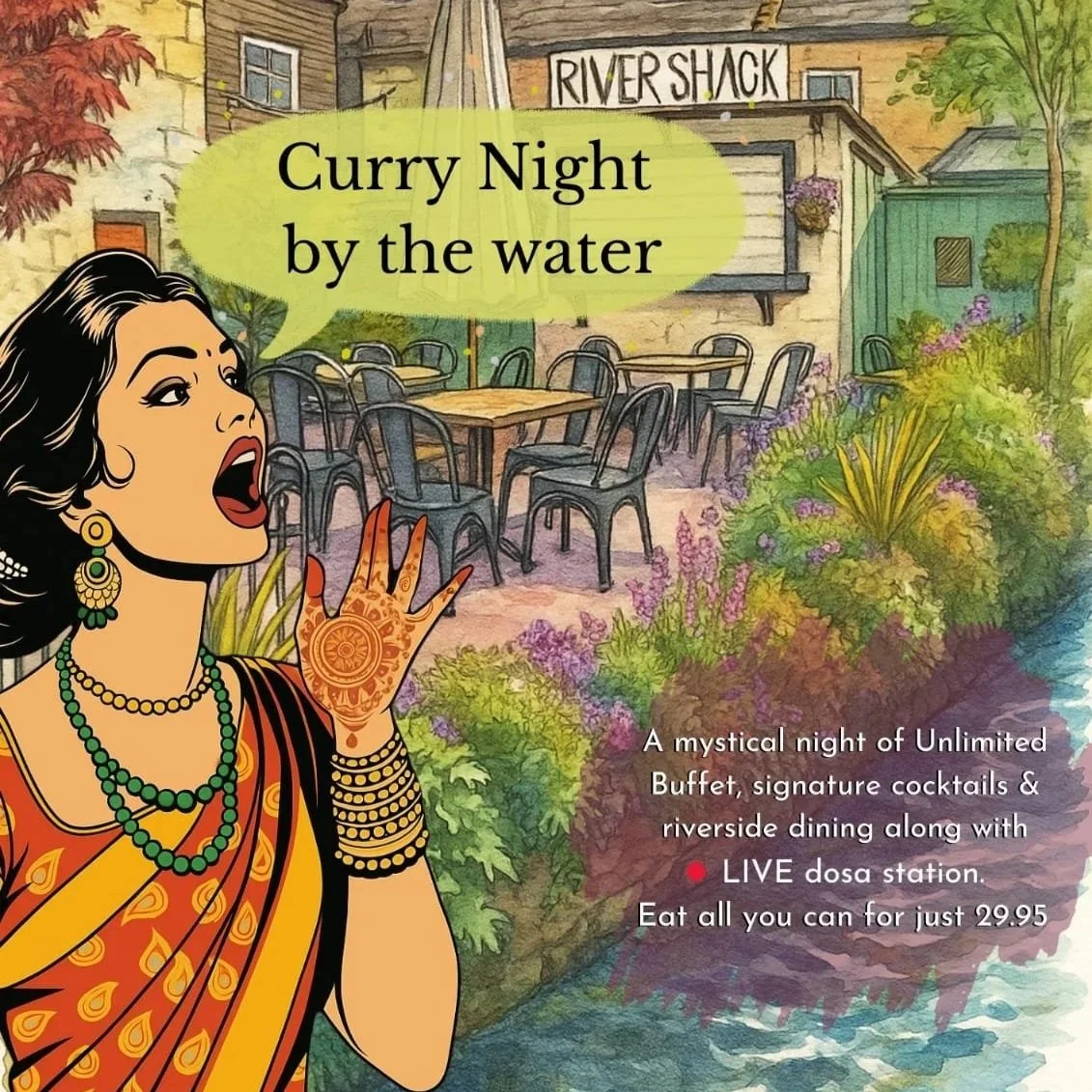 Calling all Curry Lovers! Come join us for a delicious Curry Night at Bakery on the Water! Enjoy a variety of flavourful curries - courtesy of Dosapark Cirencester - while taking in the beautiful waterfront views.